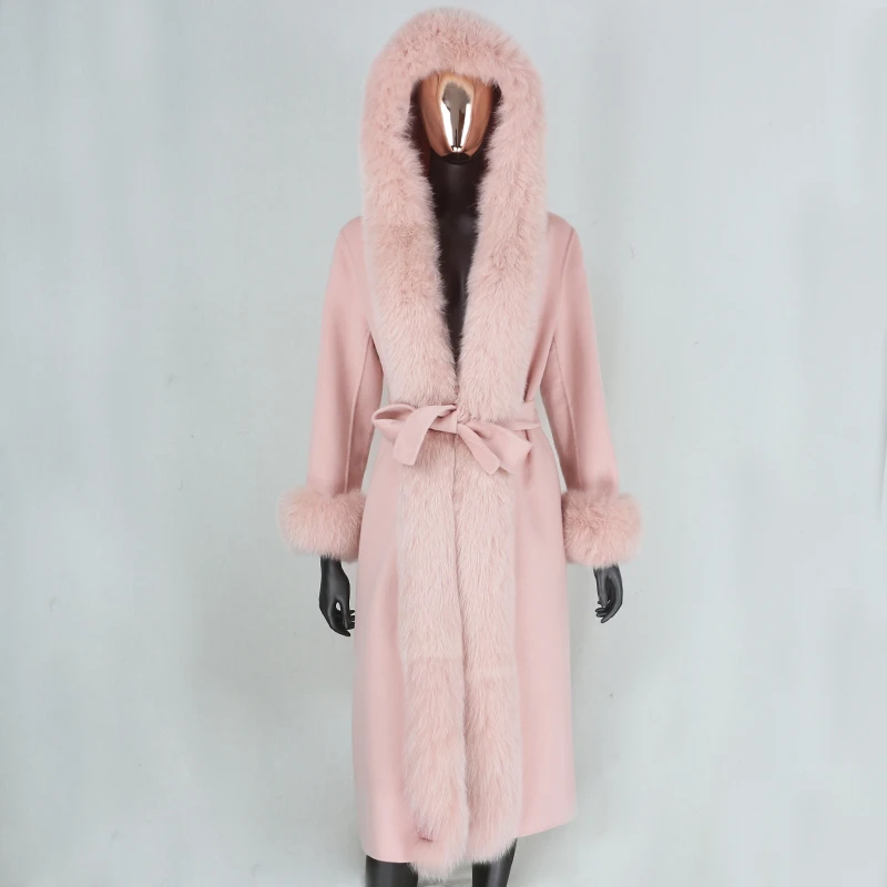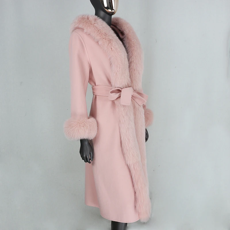Cashmere Wool Blends Real Fur Winter Coat with Belt