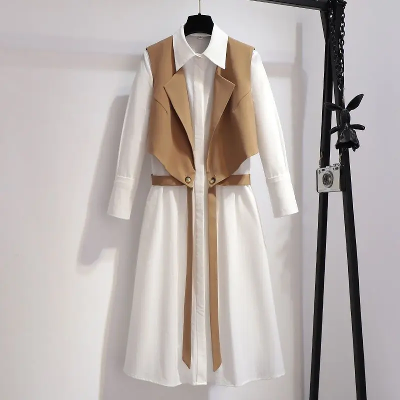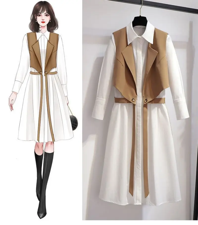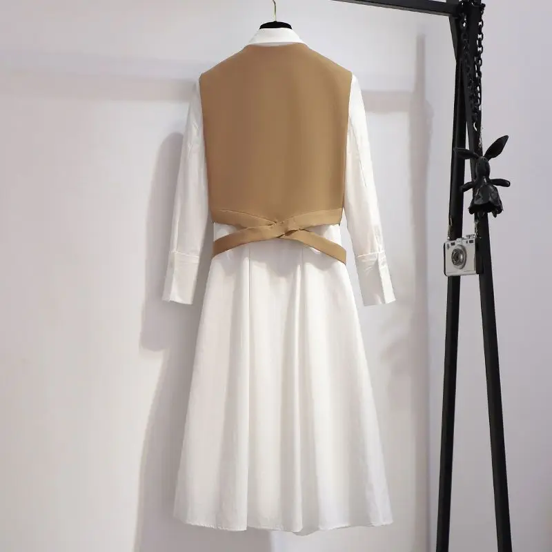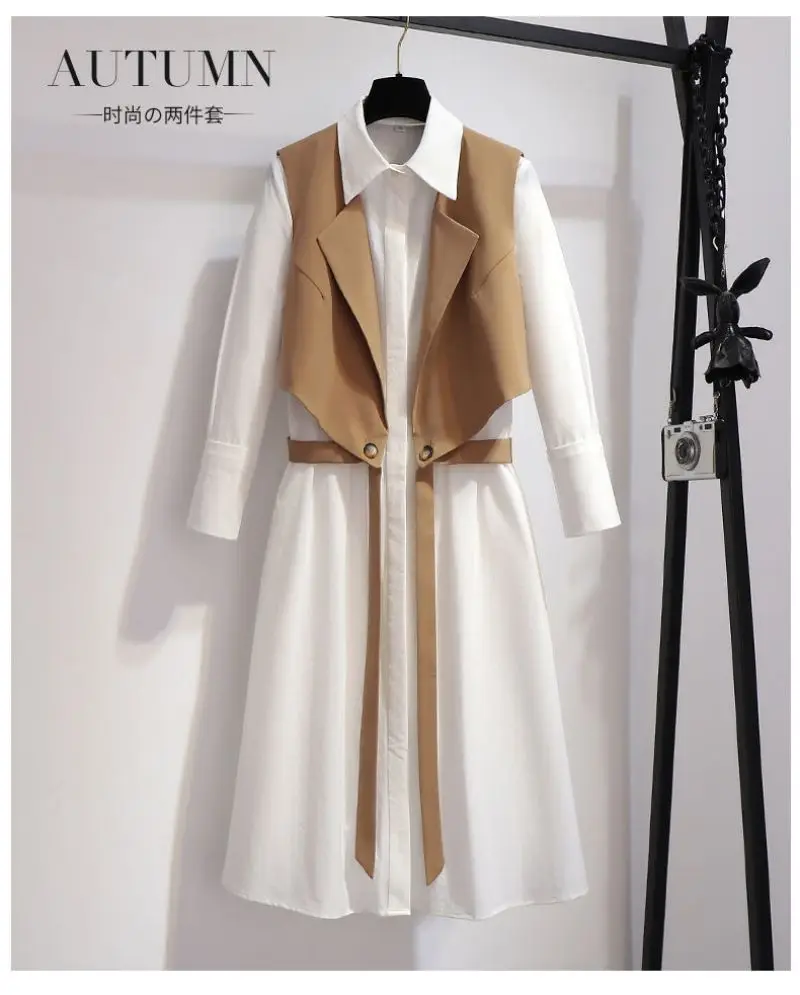 Fashion shirt dress two-piece suit tie ribbon waistcoat mid-length