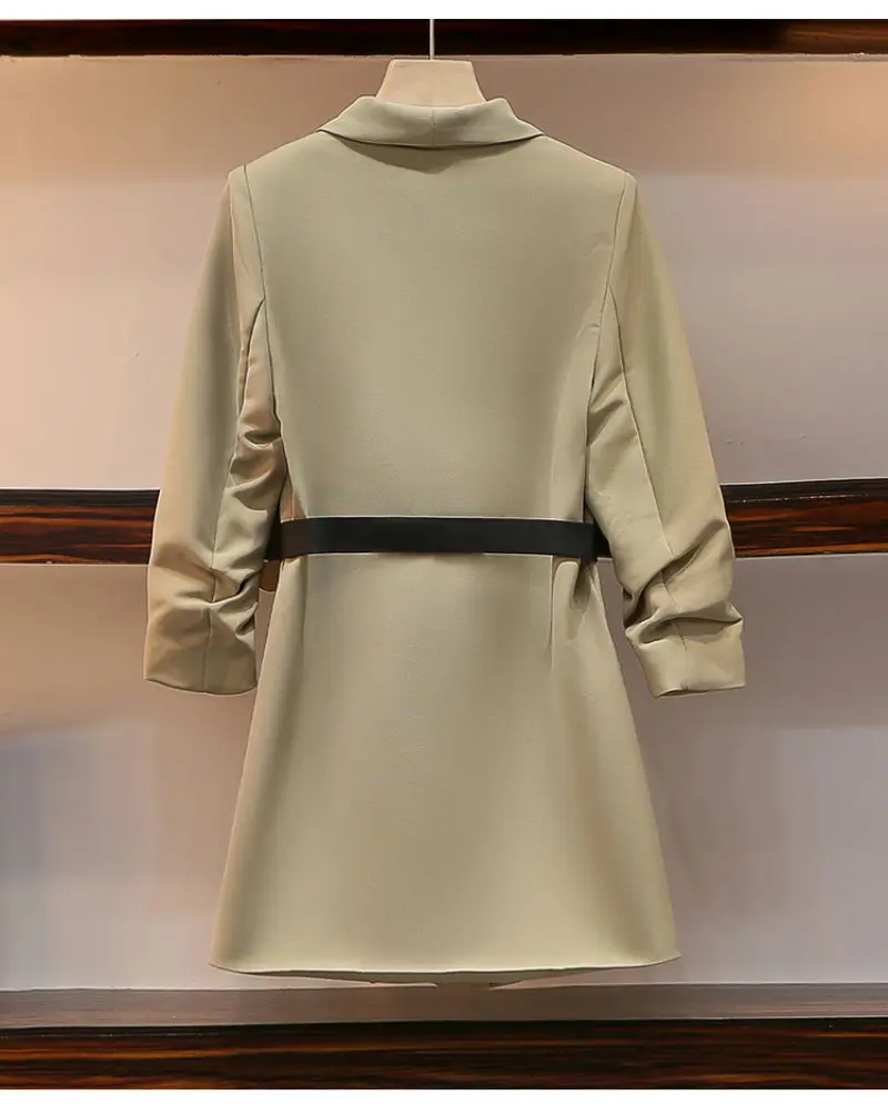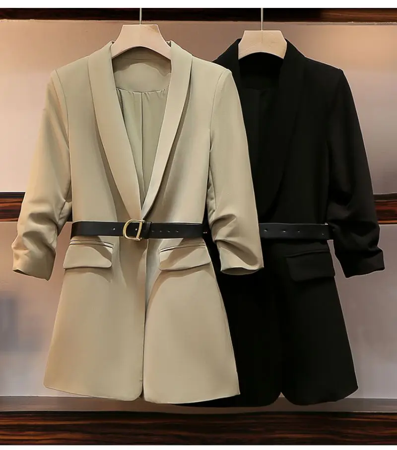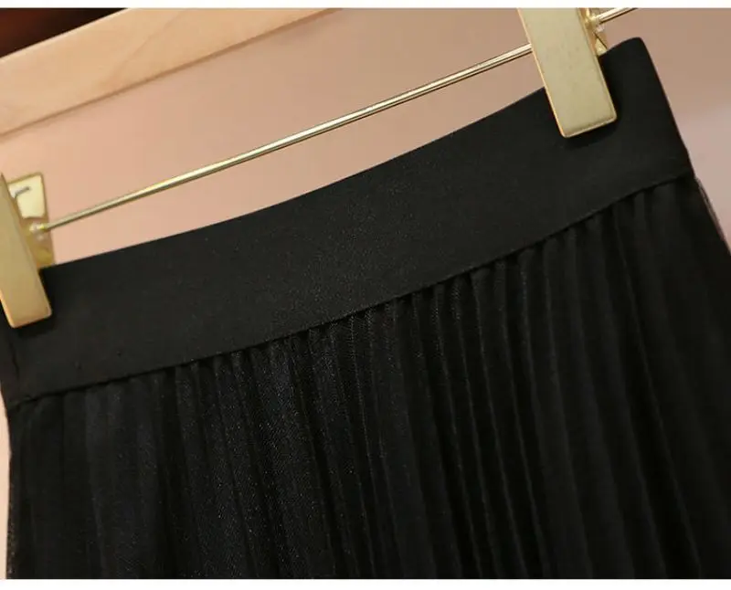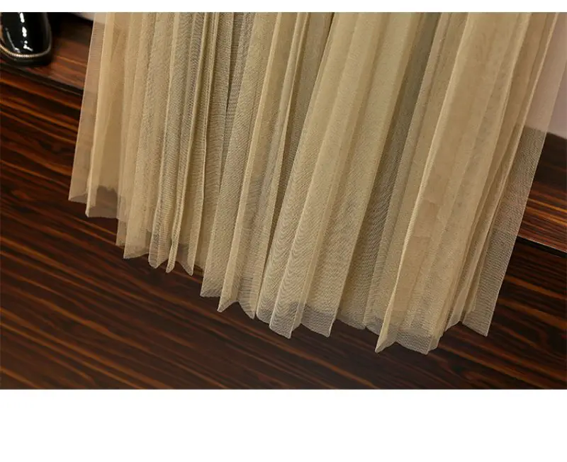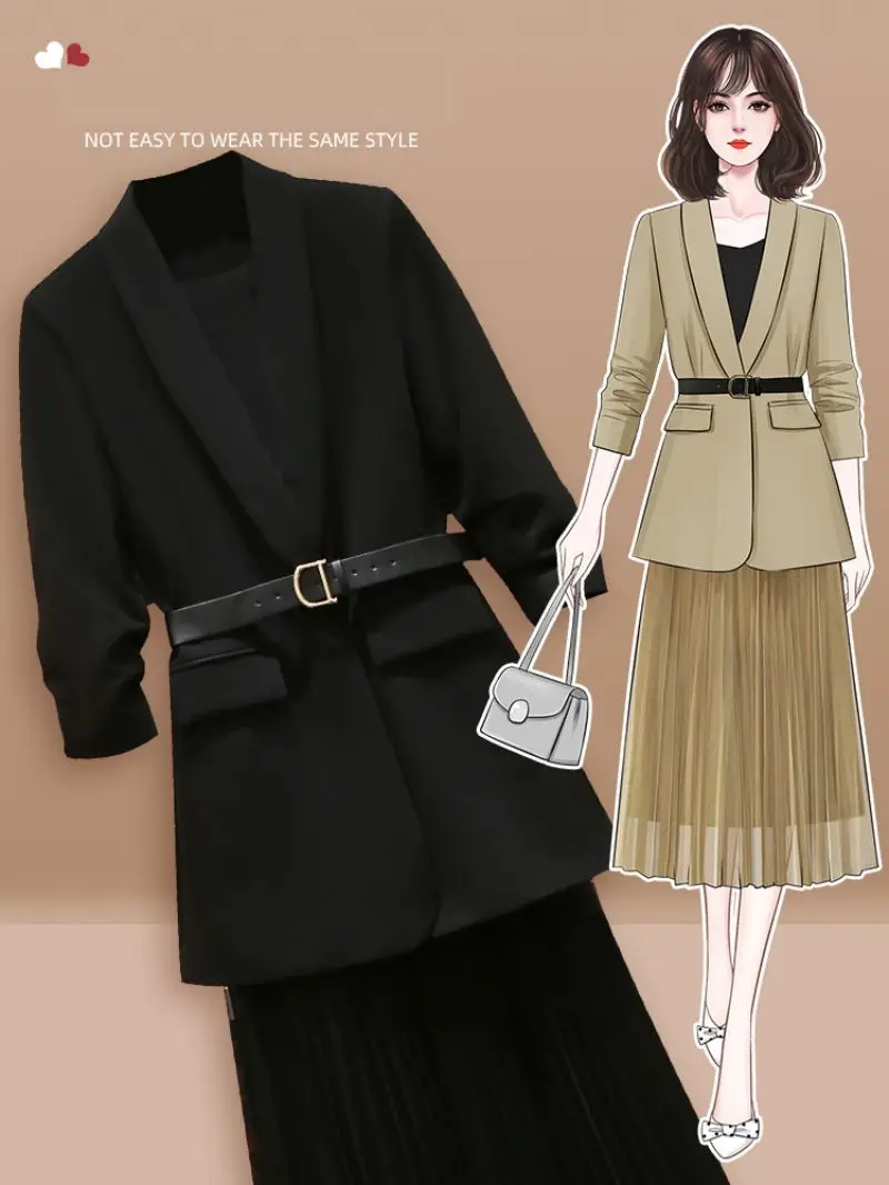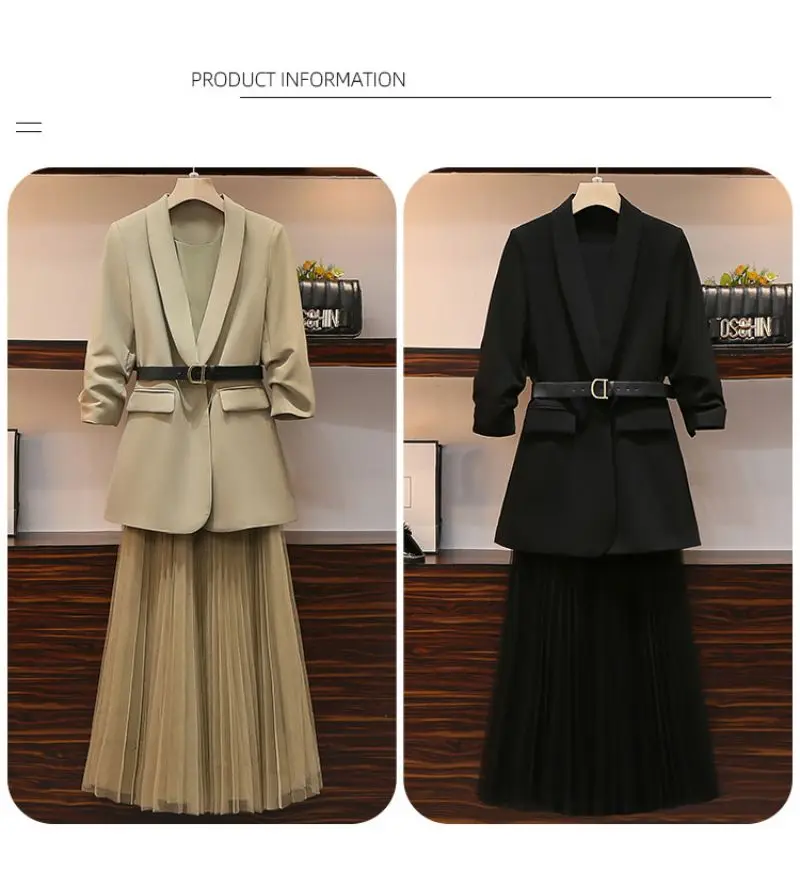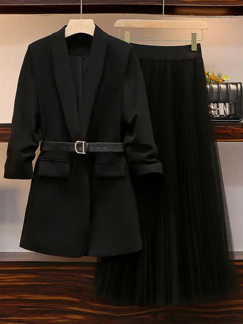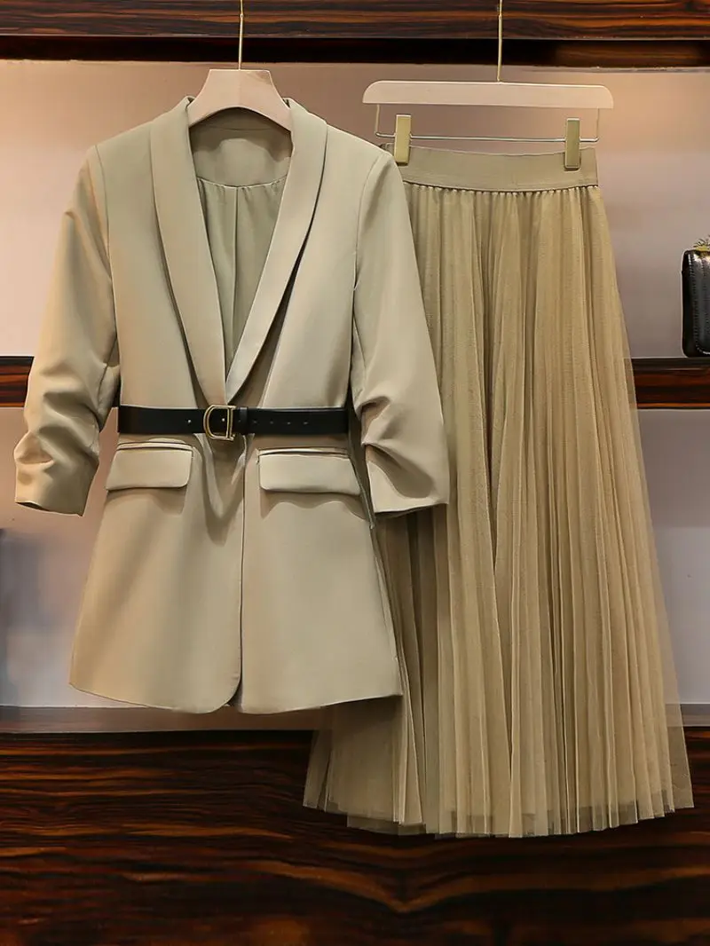 High Waist mid-length Two-piece Suit pleated mesh skirt and casual suit jacket