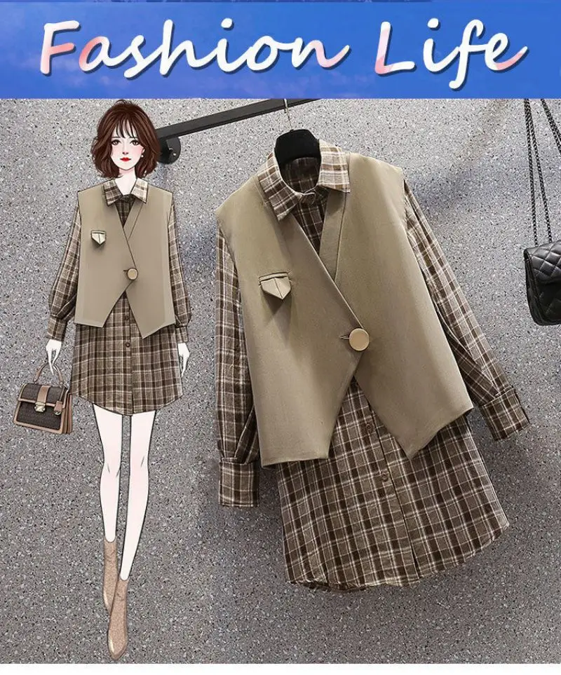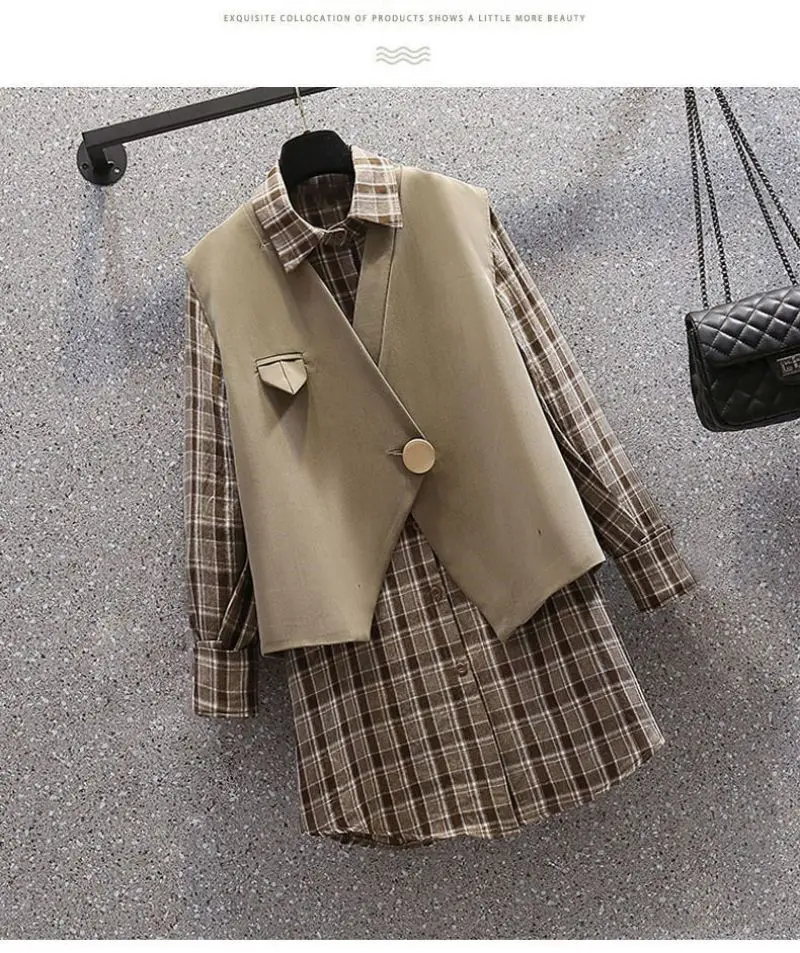 Mini dress suit plaid dress two-piece suit